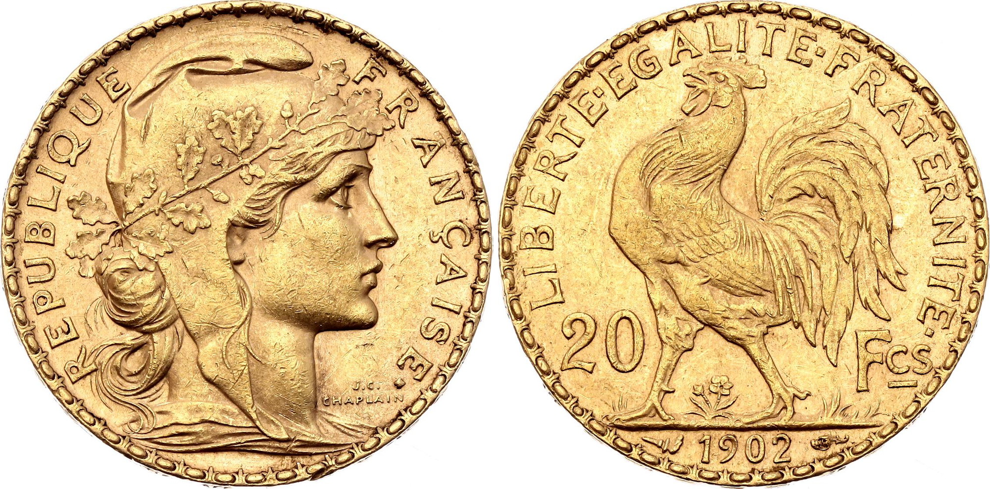 French 20 Francs Gold Rooster Coin (Random Year, 1899-1914)