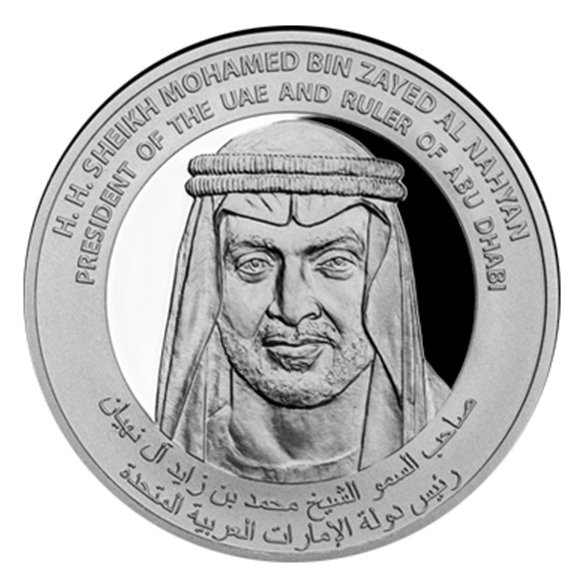 Introducing the inaugural UAE silver bullion coin series, minted by order of DMCC to celebrate the nation's leadership and achievements. This first edition coin features a distinguished portrait of His Highness Sheikh Mohamed bin Zayed Al Nahyan, President of the UAE and Ruler of Abu Dhabi, on its obverse.