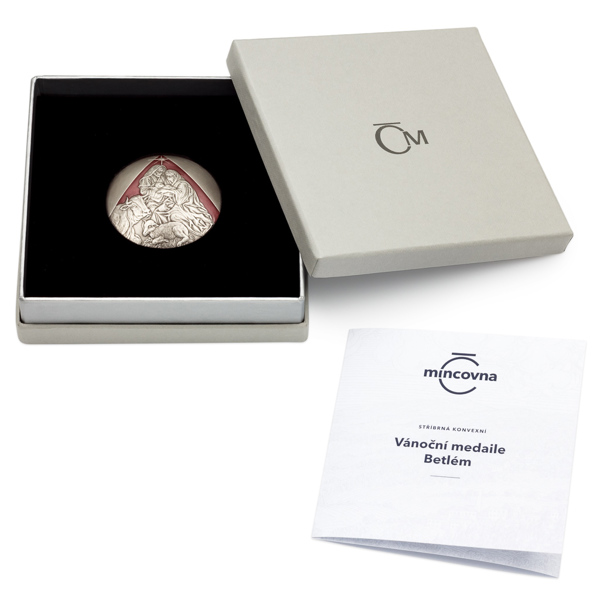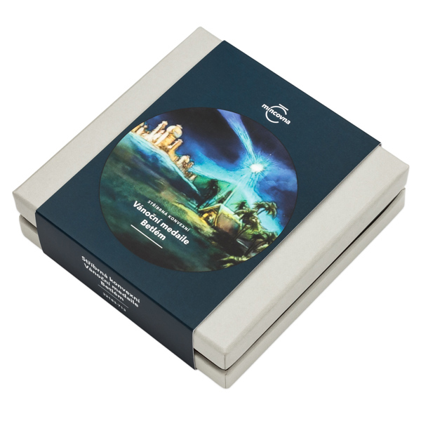 The Czech Mint presents a striking silver commemorative medal distinguished by its convex, ornament like shape a heartfelt tribute to the centuries-old tradition of the nativity scene.